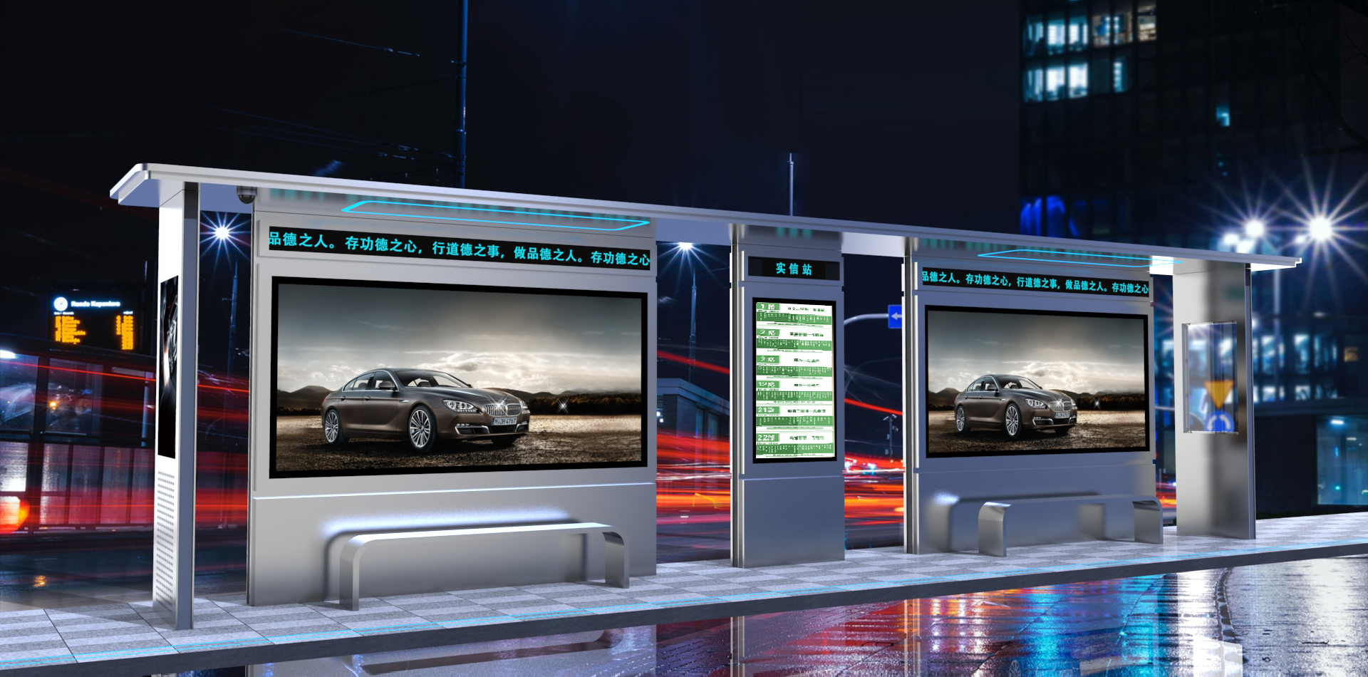 實(shí)信候車(chē)亭根據(jù)當(dāng)?shù)靥攸c(diǎn)及政府要求設(shè)計(jì)外觀(guān)簡(jiǎn)單大氣,充滿(mǎn)機(jī)械風(fēng)格但又不生硬,體現(xiàn)智慧城市的設(shè)計(jì)風(fēng)格